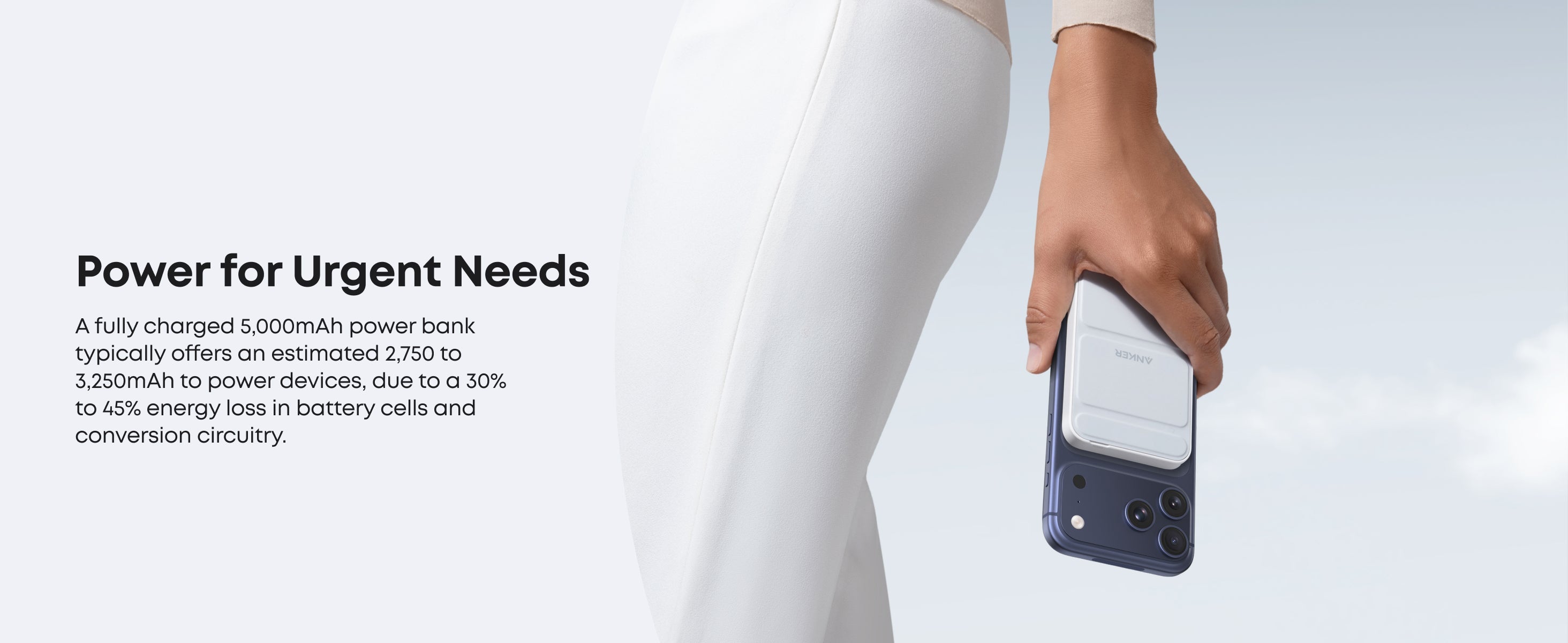 The reduced capacity during charging is due to a 35% to 45% energy loss in the battery cells and conversion circuitry. Therefore, a fully charged Anker 622 Battery (PowerCore 5K) typically offers an estimated 2,750 to 3,250mAh to power devices.